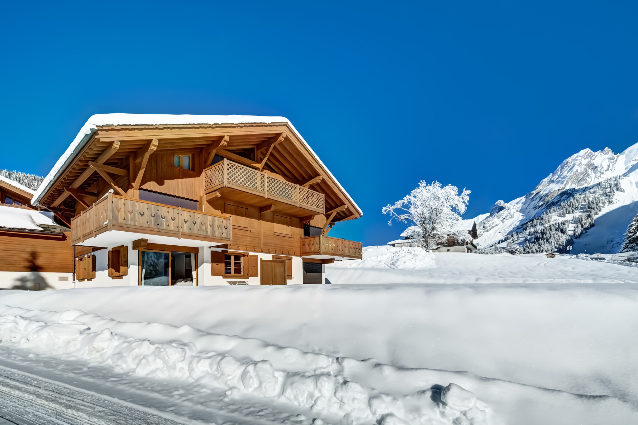 Ce chalet construit en 2000 est une petite copropriété en parfait état avec des espaces communs dans un état neuf.